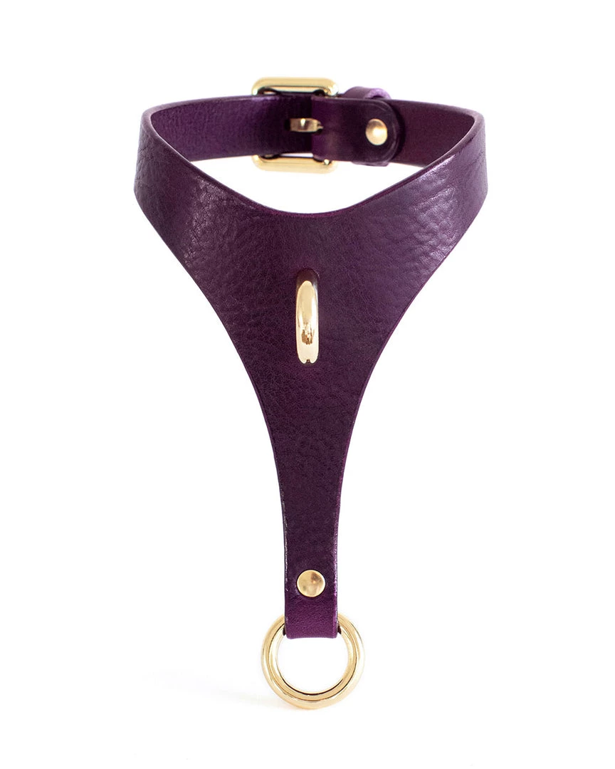 This choker is handcrafted from full-grain leather and nickel-plated hardware. The edges of the product are specially processed not to rub when wearing. When fastened, the choker fits tightly to the body. Along the entire length of the choker there is a strap adjusting the size. Nevara includes 2 chains.