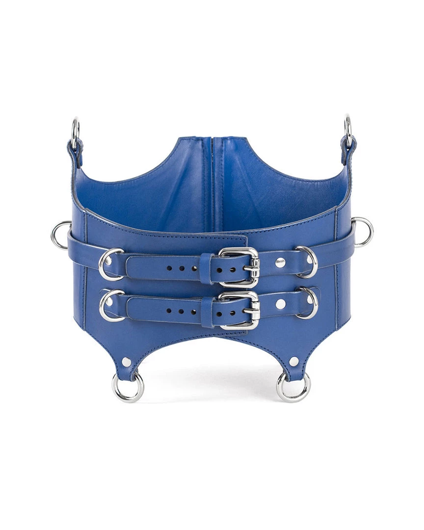 When you zip up the corset, its parts overlap. Also, Mayla’s inner side is lined with thin leather. That’s why even if the corset is super close to your body, its seams won’t rub your skin. Rivets and zippers are also hidden under the lining. Due to the processing technology, the corset and accessories from the Mayla set are not thicker than items of other restraint sets.