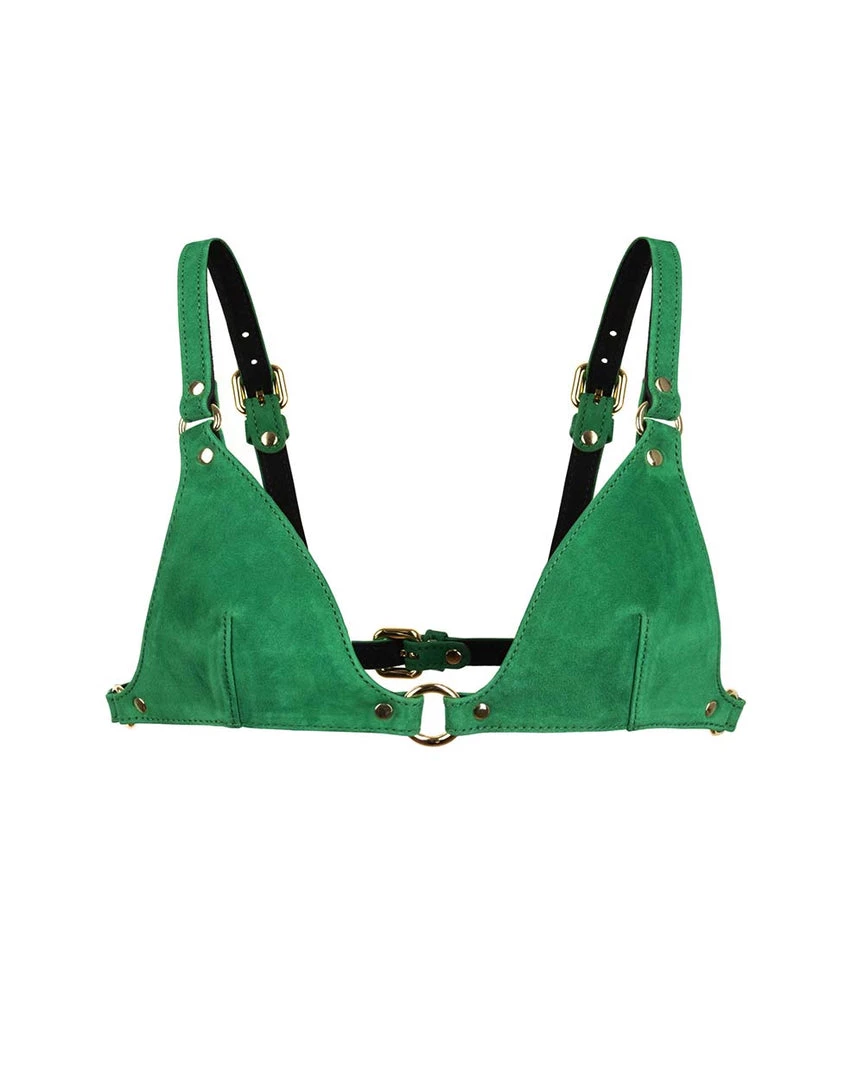 Bra Nellie is sewed from suede leather and has additional suede lining.Â