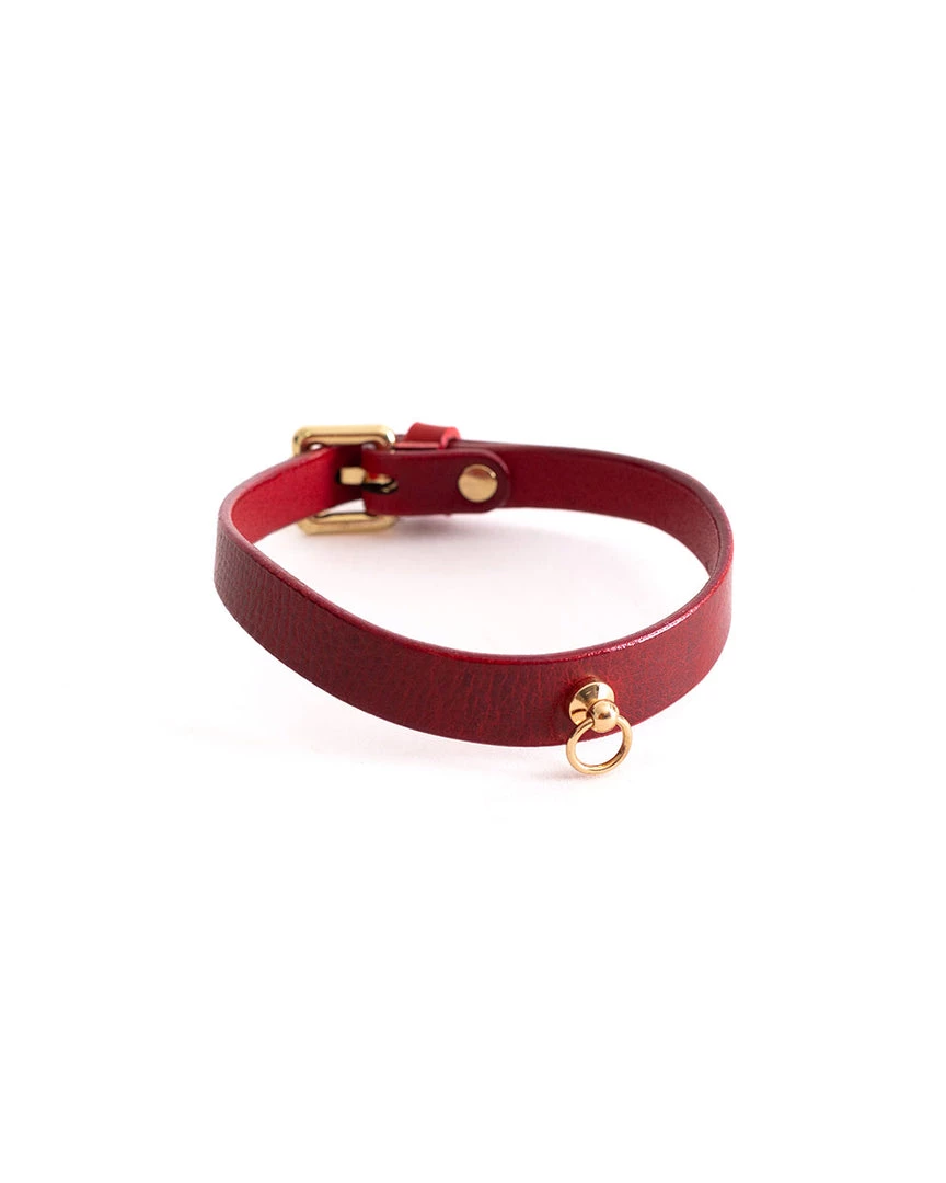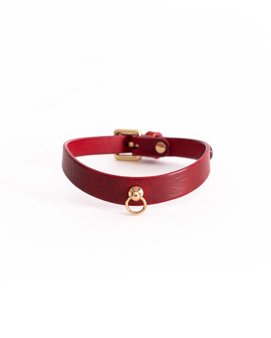 This choker is handcrafted from full-grain leather and nickel-plated hardware. The edges of the product are specially processed not to rub when wearing. When fastened, the choker fits tightly to the body. Along the entire length of the choker there is a strap adjusting the size.Â