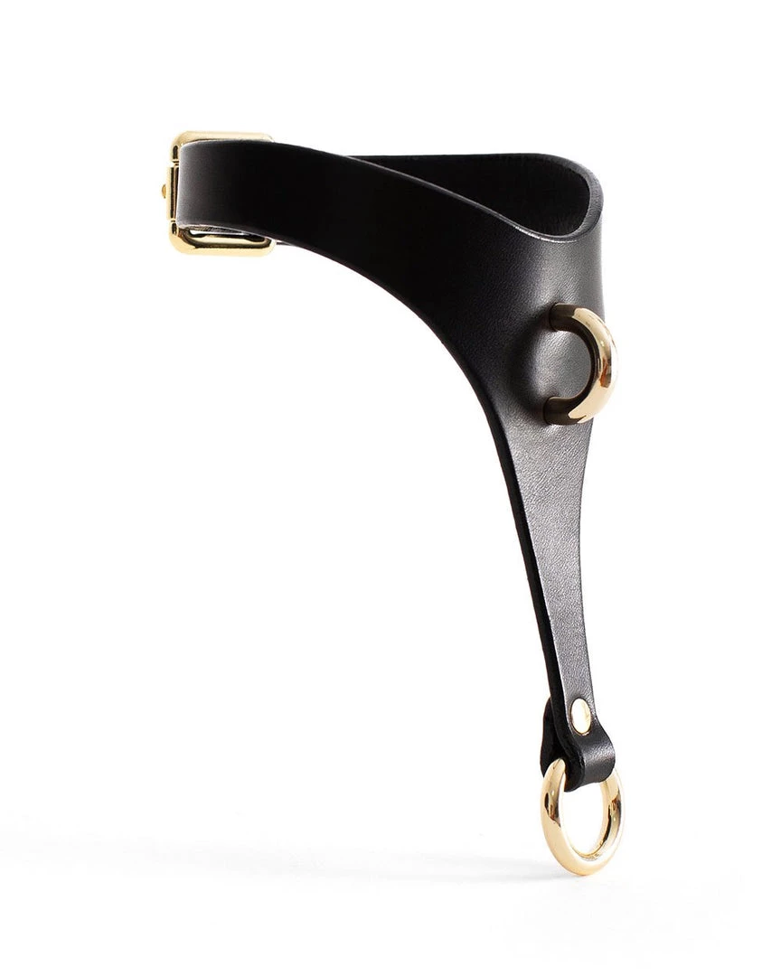 This choker is handcrafted from full-grain leather and nickel-plated hardware. The edges of the product are specially processed not to rub when wearing. When fastened, the choker fits tightly to the body. Along the entire length of the choker there is a strap adjusting the size. Nevara includes 2 chains.