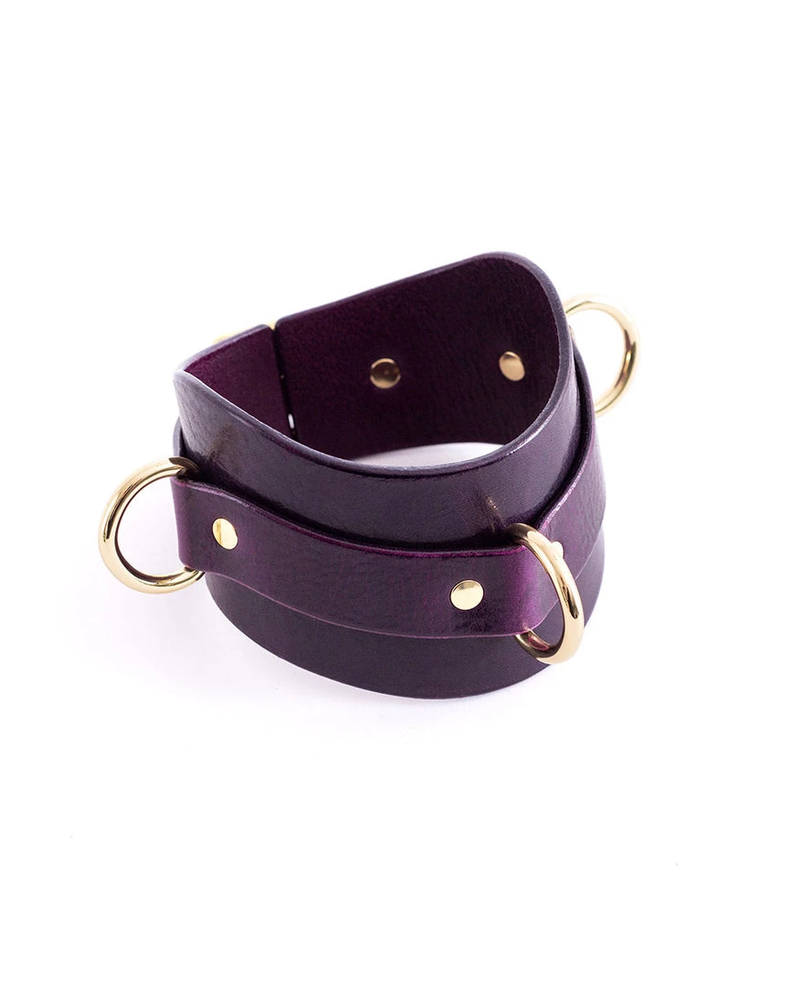 This handcrafted unisex collar is created from full-grain leather and nickel-plated hardware. Its leather edges are specially processed so as not to rub when wearing. The collar design resembles a neck brace and is quite high, covering and fixating the entire neck. The curved lines in its design visually lengthen the neck. On the collar in front and sides are D-shaped rings. You can adjust the size with the help of a buckle in the back. In sex games can be used together with a leash.
