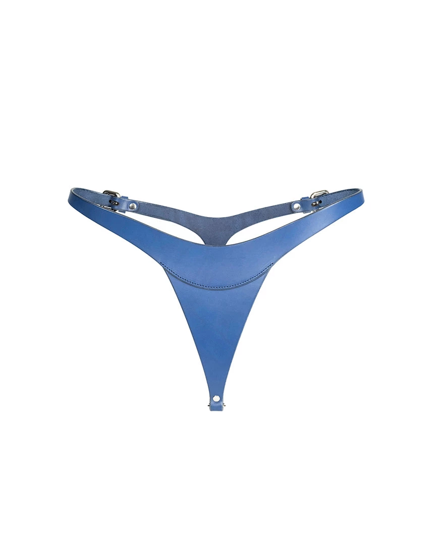 The set is sewed from full-grain leather that keeps its shape well throughout its lifespan. The bra cups are comfortable and lift the breasts a little. Also, you can regulate the size of the bra and the thong with the help of buckles. The leather strap, which wraps around the thigh, reminds thigh cuff, and with high waist thongs make the silhouette look sexy.