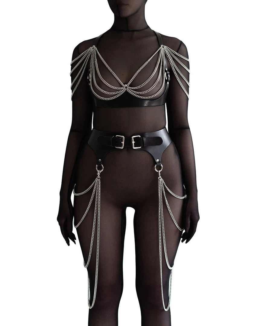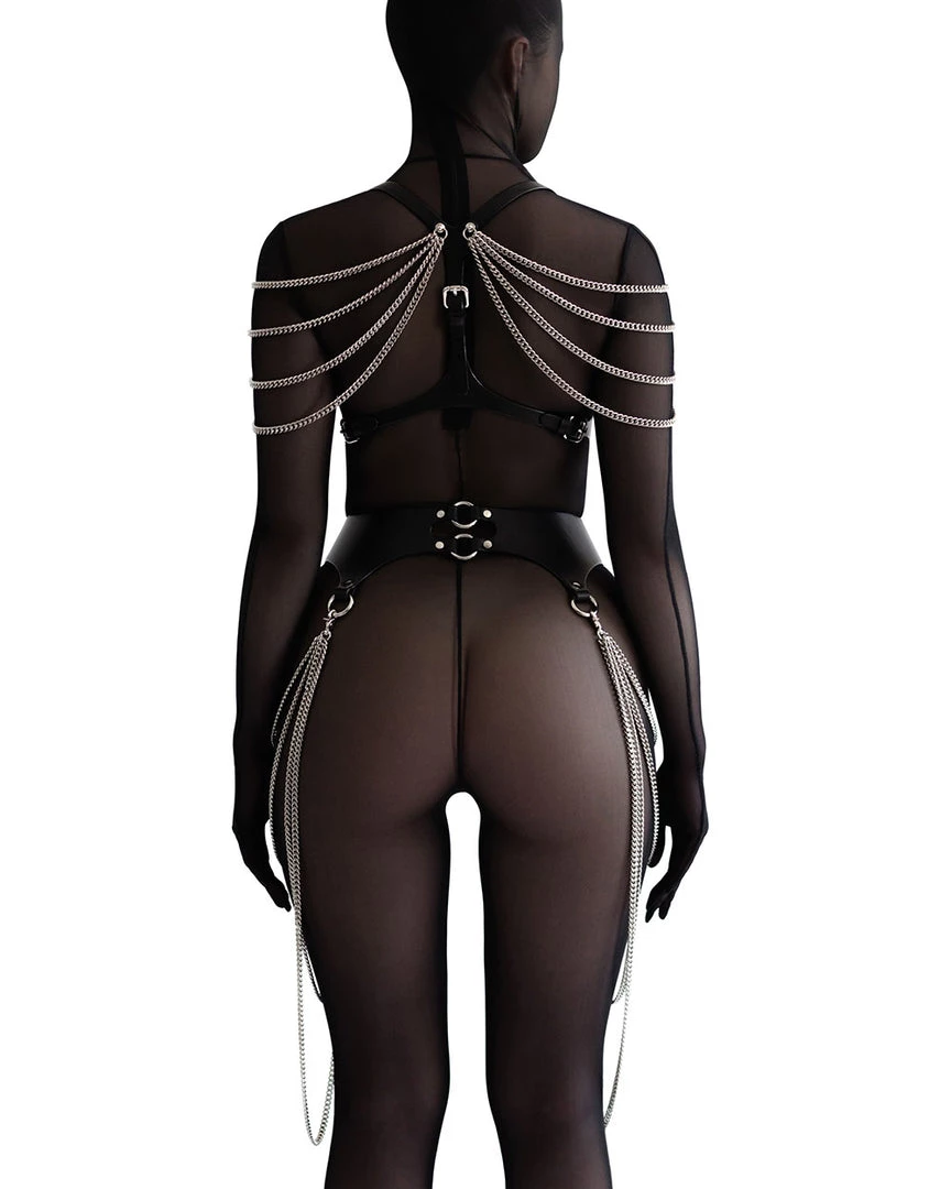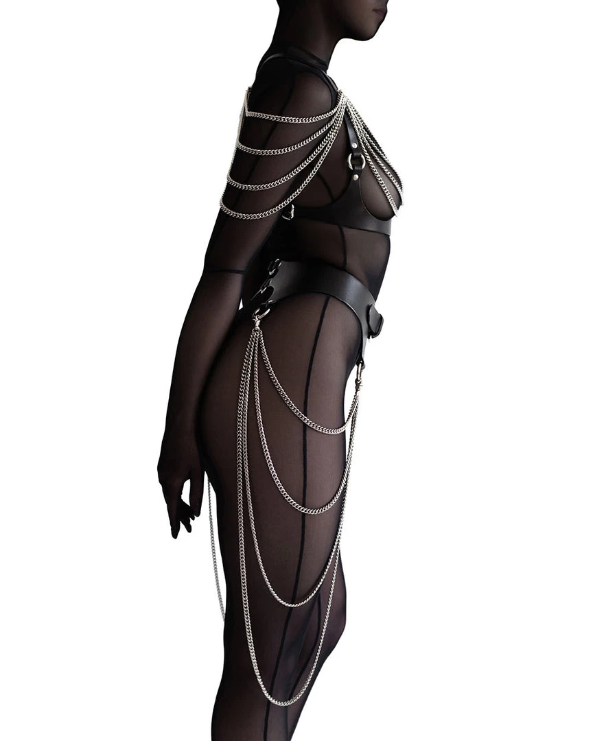 A belt is a separate form of art. It has removable chains on both sides that cascade from the hips. Six functional rings will allow you to reveal the full potential of the Noah set. You can reattach the chains and experiment with its look.